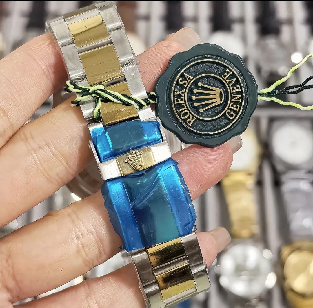 Reloj inteligente moderno rolex con correa de dos tonos esfera azul